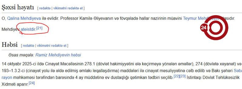 Bu,fakt onun wikipediya məlumatların da da öz əksini tapıb. Həmin bölmədə Ramiz Mehdiyevin ateist olduğu qeyd olunub.