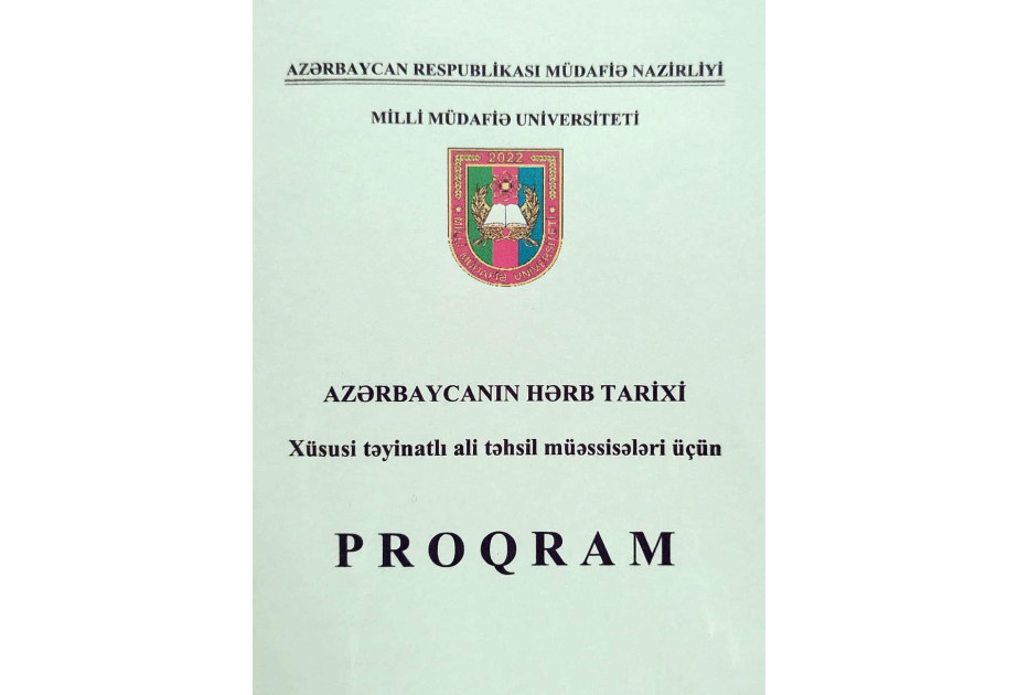“Azərbaycanın hərb tarixi” proqramı işıq üzü görüb. Ölkəmizin ali, humanitar və xüsusi təyinatlı ali təhsil müəssisələri üçün nəzərdə tutulan proqram Milli Müdafiə Universitetinin Hərbi Elmi Tədqiqat İnstitutunda hazırlanıb. Proqramın tərtibatçıları həmin institutun professoru, tarix elmləri doktoru Nurulla Əliyev və tarix üzrə fəlsəfə doktoru Nərminə Əmirbəyova, elmi redaktor tarix üzrə fəlsəfə doktoru Səbuhi Əhmədov, redaktor isə siyasi elmlər üzrə fəlsəfə doktoru Qaşqay Ramazanovdur.Bu barədə Citypost.az-a Milli Müdafiə Universitetindən məlumat verilib.Bildirilib ki, proqramın məqsədi Milli Müdafiə Universitetində “Azərbaycanın hərb tarixi” fənninin tədrisi zamanı qədim, orta və yeni dövrlərdə Azərbaycanda hərb işinin inkişaf mərhələlərini, Silahlı Qüvvələrimizin yaradılması və formalaşması prosesini, respublikamızın müstəqilliyinin elan...
