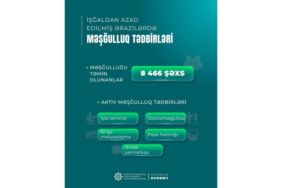 Əmək və Əhalinin Sosial Müdafiəsi Nazirliyinin tabeliyində Dövlət Məşğulluq Agentliyi işğaldan azad edilmiş ərazilərimizə köçürülmüş sakinlərin məşğulluq tədbirləri ilə əhatə olunması işlərini davam etdirir.