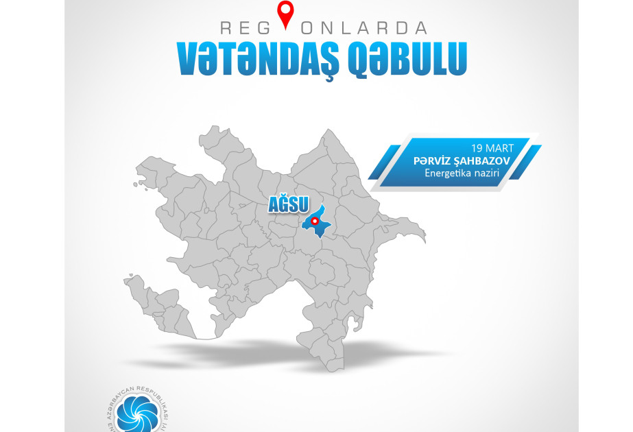 Energetika naziri Pərviz Şahbazov martın 19-da Ağsu, Şamaxı, Göyçay, İsmayıllı, Kürdəmir rayonlarından olan vətəndaşlarla görüşəcək.Nazirlikdən Citypost.az-a bildirilib ki, görüş saat 11:00-dan başlayaraq Ağsu rayon Heydər Əliyev Mərkəzində (ünvan: AZ0600, Ağsu şəhəri, Azərbaycan küçəsi, 25) keçiriləcək.Görüşə gəlmək istəyən vətəndaşlar qeydiyyatdan keçmək üçün Energetika Nazirliyinin “974 - Çağrı Mərkəzi”, 598-16-55 “Qaynar Xətt”i, 598-16-53/54 (daxili 1145, 1146, 1245) telefon nömrələri (əlaqələndirici şəxs: Əzizə Cəfərova), [email protected] elektron poçt ünvanı, eləcə də Enerji Məsələlərini Tənzimləmə Agentliyinin Kürdəmir filialı (əlaqələndirici şəxs: Elçin Məmmədov, əlaqə telefonu: (050) 509-80-50, elektron poçt ünvanı: [email protected]) və Enerji Məsələlərini Tənzimləmə Agentliyinin Şəki filialı (əlaqələndirici şəxs: Asim Məmmədov, əlaqə telefonu: (050) 378-28-46,...