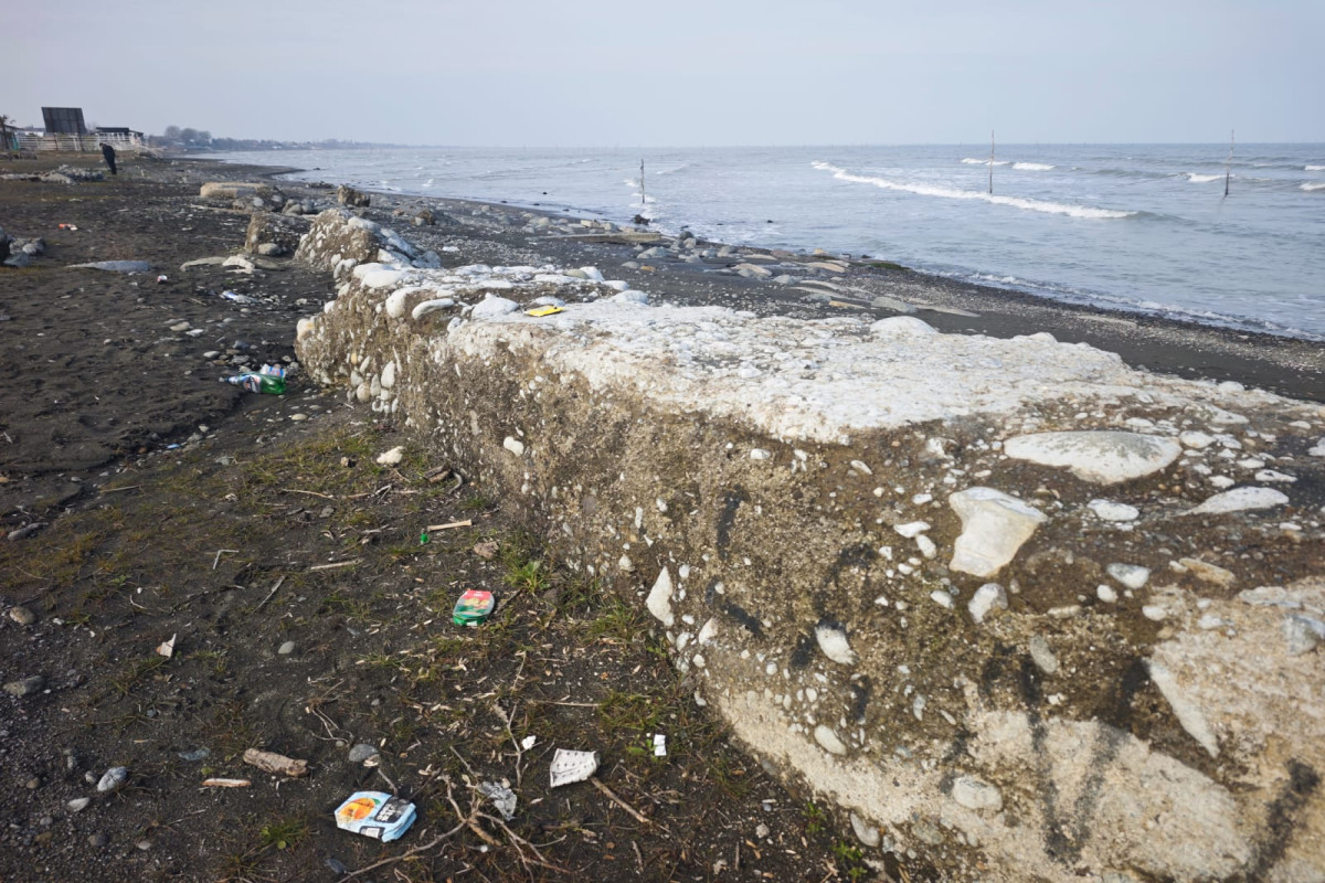 Lənkəranda geri çəkilən Xəzər dənizində nəhəng beton bünövrələr üzə çıxıb