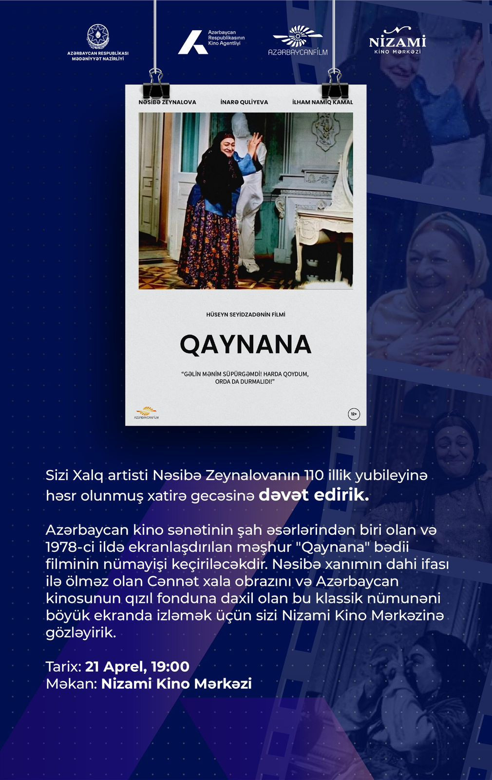 Citypost.az xəbər verir ki, Nəsibə Zeynalovanın 110 illik yubileyi münasibətilə “Qaynana” filmi nümayiş olunub